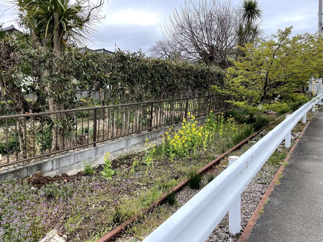 こういうカーブを描いた道路などは先ほどの駐車場のように暗渠か廃線跡の可能性が高いです。今回は距離が長い、東海道線近くから分岐してる、どう見ても人工的な曲線であることを考えると廃線跡の可能性が非常に高いです。というか絶対に廃線跡だと思います、廃線跡じゃなかったら昼御飯抜いても良いです。