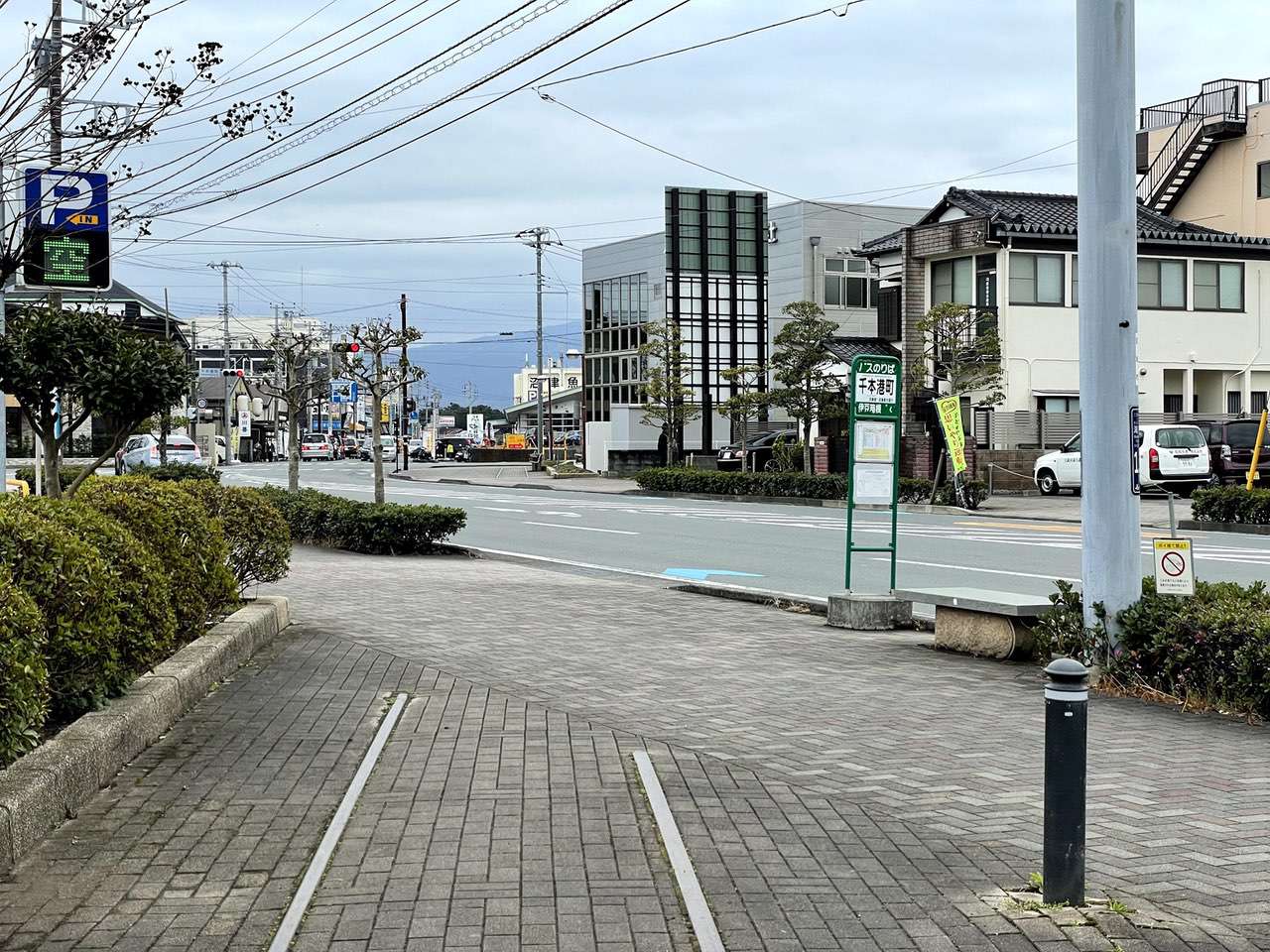 ちょっと気になる……乗ってみたい誘惑に駆られます。が次の沼津港行きバスは電気バスではなく普通のバスのようなので諦めて歩きます。
