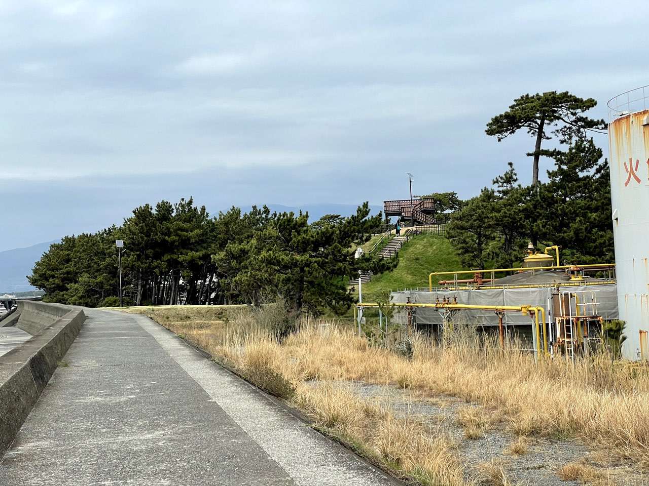 その碑から海沿いの堤防を歩いていくと何やら高台をみつけました。無料で高いところに登れるのであればいくしかありません。