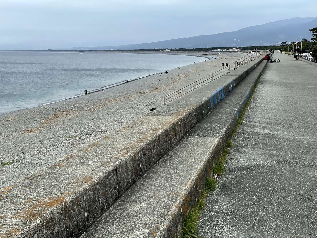 防潮、防風のために植えられた松林なので海岸線に沿って綺麗に湾曲しています。晴れていれば富士山も見えると思うので非常に美しい景色が見られそうです。