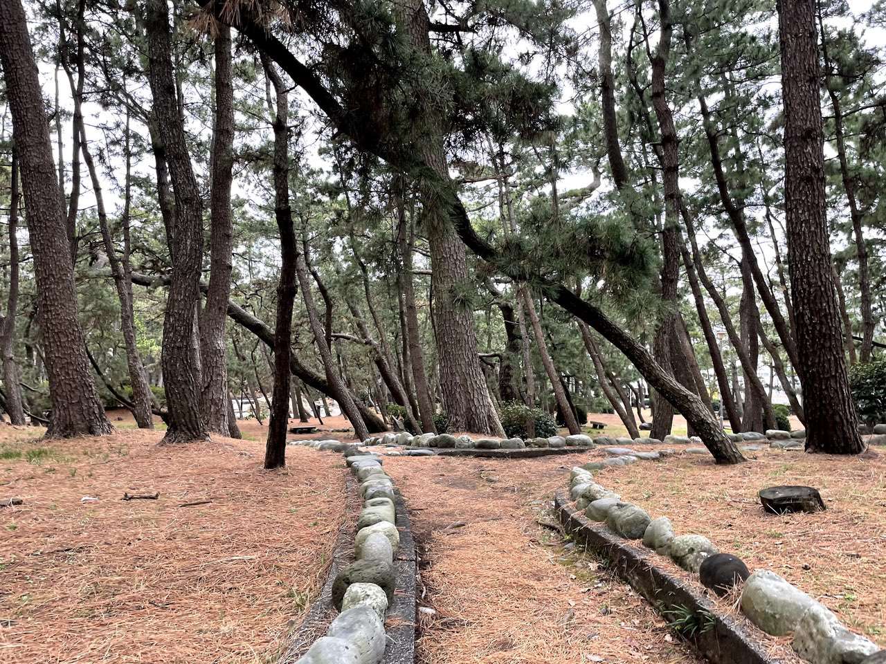 そんな松林の中を駅に向かって抜けていきます。松林を歩いてるといつも思うのですが枯れた松葉ってとても痛そうですよね。ここで転けると全身松葉で串刺しになりそうな気がしてちょっと歩くのが怖いです。本当に転けたとしても早々刺さることはないと思いますが。